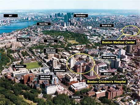 The BCRP combines the pediatric training programs at two institutions, Boston Children’s Hospital (Harvard Medical School) and Boston Medical Center (Boston University Chobanian & Avedisian School of Medicine). As shown below, the two institutions are less than two miles apart. Both are accessible by public transportation. The leadership and organization of the combined program is very tightly integrated, with residency program organizational meetings alternating at the two hospitals and an educational and training program that seamlessly blends the two institutions.
